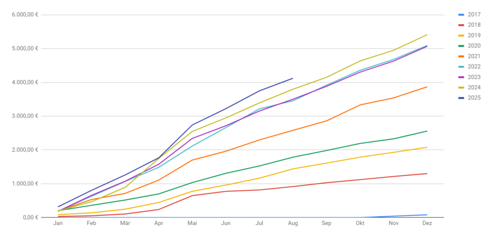 Etwas später als sonst fasse ich nachfolgend meine Einnahmen und Käufe im August zusammen. Das Vorjahr konnte ich leider nicht übertreffen, dennoch freue ich mich über konstante Einnahmen in einem ansonsten ruhigen Monat.